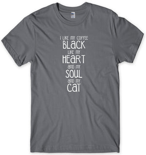 I Like My Coffee Black Like My Heart And My Soul And My Cat Mens Funny Unisex Style T-Shirt