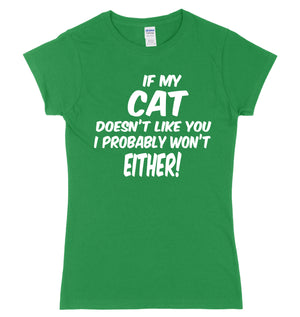 IF MY CAT DOESN'T LIKE YOU I PROBABLY WON'T EITHER FUNNY WOMENS LADIES SLIM FIT T-SHIRT