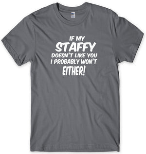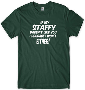 IF MY STAFFY DOESN'T LIKE YOU I PROBABLY WON'T EITHER MENS FUNNY SLOGAN UNISEX T-SHIRT