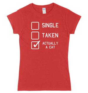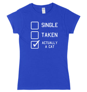Single, Taken, Actually A Cat Womens Ladies Funny Slim Fit T-Shirt