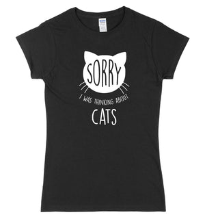 Sorry, I Was Thinking About Cats Womens Ladies Funny Slim Fit T-Shirt