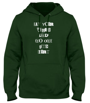 EAT YOUR VEGGIES AND NO ONE GETS HURT MENS LADIES WOMENS UNISEX HOODIE