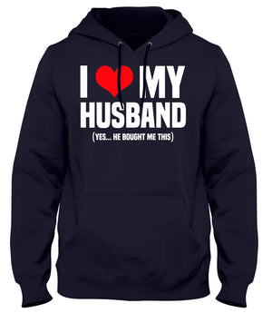 I LOVE MY HUSBAND (YES HE BOUGHT ME THIS) MENS WOMENS LADIES UNISEX FUNNY SLOGAN HOODIE