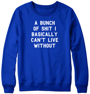 A BUNCH OF SHIT I BASICALLY CAN'T LIVE WITHOUT MENS LADIES WOMENS UNISEX SWEATSHIRT SWEATER