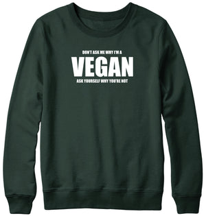 DON'T ASK ME WHY I'M A VEGAN MENS LADIES WOMENS UNISEX SWEATSHIRT SWEATER