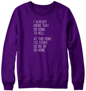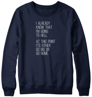 I ALREADY KNOW THAT I'M GOING TO HELL AT THIS POINT IT'S EITHER GO BIG OR GO HOME WOMENS LADIES MENS UNISEX SWEATSHIRT