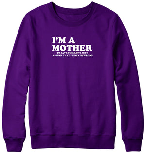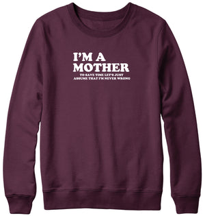 I'M A MOTHER TO SAVE TIME LET'S JUST ASSUME THAT I'M NEVER WRONG WOMENS LADIES MENS UNISEX SWEATSHIRT