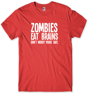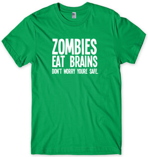 ZOMBIES EAT BRAINS DON'T WORRY YOU'RE SAFE MENS FUNNY UNISEX T-SHIRT