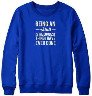 BEING AN ADULT IS THE DUMBEST THING I HAVE EVER DONE WOMENS LADIES MENS UNISEX SWEATSHIRT