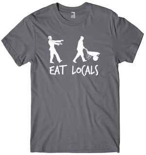 Show your support for your local community this Halloween with this funny Men's fit Zombie T-shirt. Available in a choice of 9 shirt colours each t-shirt features the design 'Eat Locals'. Sizes range from Small - XXL and these tees are 100% Cotton.
