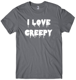 If you love all things creepy then this T-Shirt is for you. Our 'I LOVE CREEPY' tee comes featuring a creepy white print with dripping effect text. This is perfect for the Halloween Season. Available in a choice of 9 Shirt colours our sizes range from Small - XXL. Our Mes/Unisex style tees are 100% Cotton.