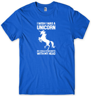 I WISH I WAS A UNICORN SO I COULD STAB IDIOTS WITH MY HEAD MENS FUNNY UNISEX T-SHIRT