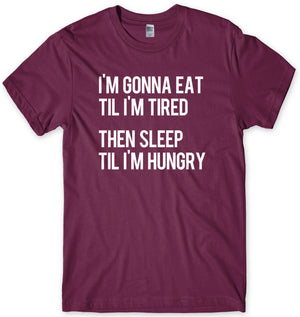 I'm Gonna Eat Til I'm Tired Then Sleep Til I'm Hungry Mens Funny Unisex T-Shirt