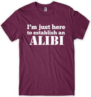 I'm Just Here To Establish An ALIBI Mens Funny Unisex Style T-Shirt
