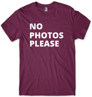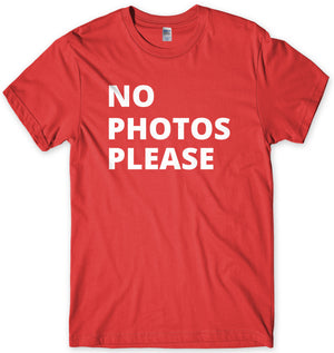 • Some sunglasses on, maybe a hat too and you could be anyone right? Cause a stir with our funny 'No Photos Please' slogan T-Shirt. Featuring a bold, white print this tee is definitely one to get you noticed.