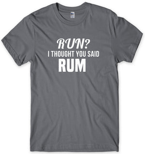 • Our funny 'Run? I Thought You Said Rum' T-Shirt has been created for those of you who really don't like exercising. If your idea of a workout is lifting a glass to your mouth then we've got you covered.