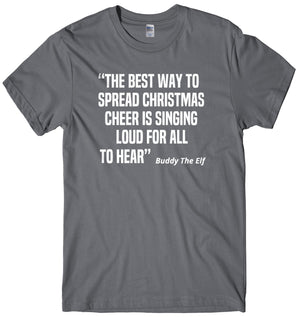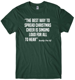 Spread the joy this Christmas by wearing one of our 'Elf' inspired Xmas tees. Featuring the quote 'The Best Way To Spread Christmas Cheer Is Singing Loud For All To Hear - Buddy The Elf' this T-Shirt will get anyone into the Christmas spirit! This design features a white print and comes in a choice of 9 shirt colours. Sizes range from Small - XXL. Our Mens/Unisex fit tees are 100% Cotton. This is an inspired by design and is not official merchandise.
