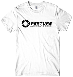 This T-shirt is a must have for any fan of the Video game Portal. Inspired by the game this shirt shows the logo for the Aperture Laboratories.