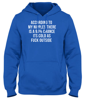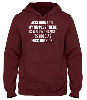 ACCORDING TO MY NIPPLES THERE IS A 99% CHANCE IT'S COLD OUTSIDE MENS WOMENS UNISEX FUNNY HOODIE