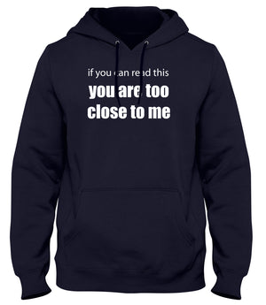IF YOU CAN READ THIS YOU ARE TOO CLOSE TO ME MENS LADIES WOMENS UNISEX HOODIE