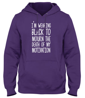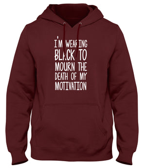 I'M WEARING BLACK TO MOURN THE DEATH OF MY MOTIVATION MENS LADIES WOMENS UNISEX HOODIE
