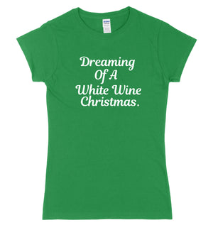 Dreaming Of A White Wine Christmas Womens Ladies Slim Fit Christmas T-Shirt