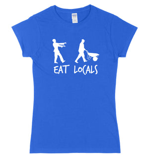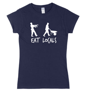 EAT LOCALS - Your local community needs your support now more than ever. So eat locals this Halloween (Said the Zombie to the other Zombie). This funny Halloween T-Shirt comes featuring a White print and is available on a choice of 6 shirt colours.