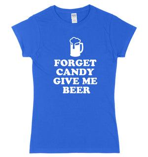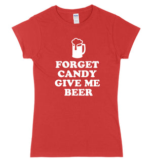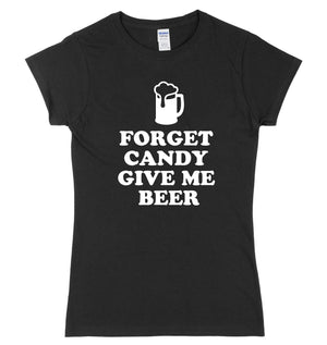 FORGET CANDY GIVE ME BEER - The perfect Trick or Treating T-Shirt for Adults this Halloween. Featuring a White print this design is available on a choice of 6 shirt colours.