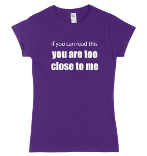 If You Can Read This You Are Too Close To Me Womens Ladies Slim Fit T-Shirt