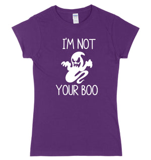 I'M NOT YOUR BOO - Just because it's Halloween does not make it acceptable for everyone to start calling you Boo right? Give them a polite reminder with this funny Halloween T-Shirt. Featuring a White print this Ghost themed design is available on a choice of 6 shirt colours.