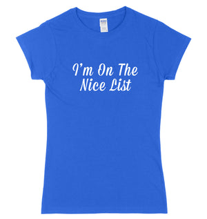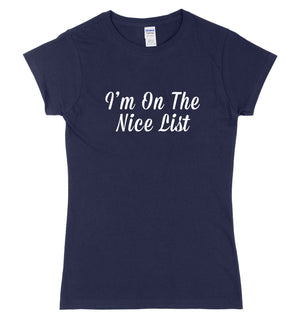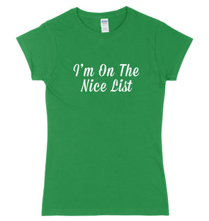 I'm On The Nice List Womens Ladies Slim Fit Christmas T-Shirt