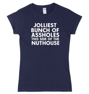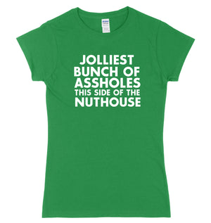 Jolliest Bunch Of Assholes This Side Of The Nuthouse Womens Ladies Slim Fit Christmas T-Shirt