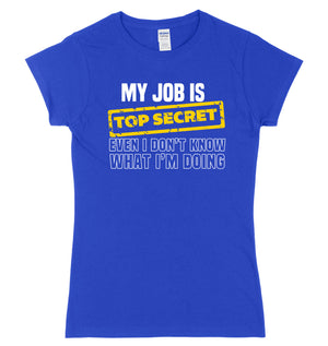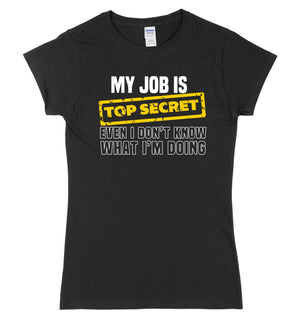 My Job Is Top Secret Even I Don't Know What I'm Doing Womens Ladies Funny Slim Fit T-Shirt