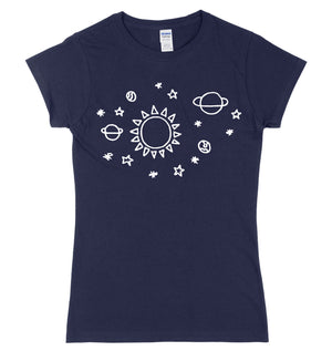 Space Pattern Solar System Womens Ladies Slim Fit T-Shirt