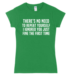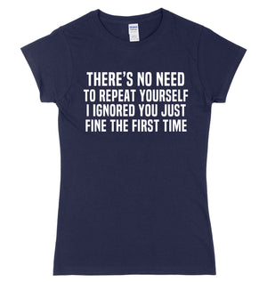 There's No Need To Repeat Yourself. I ignored You Just Fine The First Time Womens Ladies Slim Fit T-Shirt