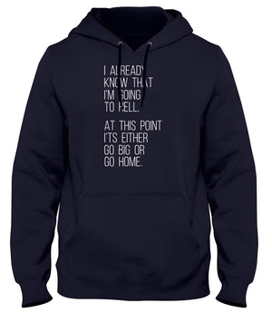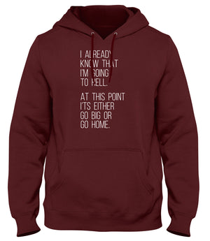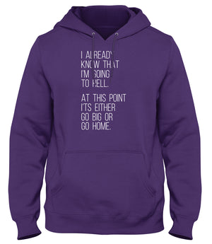 I ALREADY KNOW THAT I'M GOING TO HELL AT THIS POINT IT'S EITHER GO BIG OR GO HOME WOMENS LADIES MENS UNISEX HOODIE