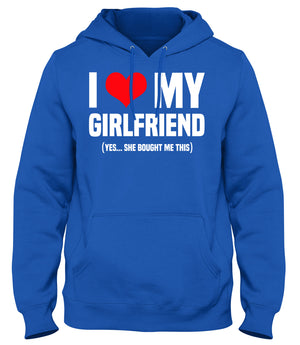 I LOVE MY GIRLFRIEND (YES SHE BOUGHT ME THIS) MENS WOMENS LADIES UNISEX FUNNY SLOGAN HOODIE