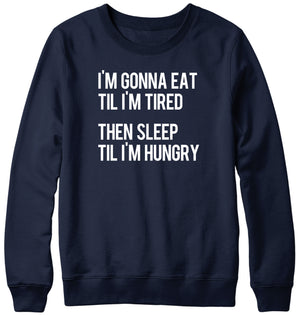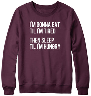 I'M GONNA EAT TIL I'M TIRED THEN SLEEP TIL I'M HUNGRY WOMENS LADIES MENS UNISEX SWEATSHIRT