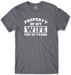 PROPERTY OF MY WIFE FOR 40 YEARS - This Wedding Anniversary T-Shirt has been designed for those celebrating a massive 40 years of marriage! That's definitely something to celebrate. Get your husband to celebrate in style with this funny Ruby Wedding Anniversary gift.