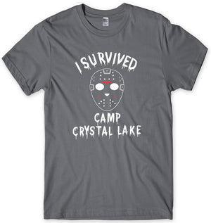 • Let everyone know that you were the one who got away with our 'I Survived Camp Crystal Lake' T-Shirt. Inspired by the classic horror movie 'Friday The 13th' this is a must have shirt for Jason Vorhees & Horror fans.