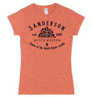 Get spooky and find your inner Witch with this Hocus Pocus inspired T-Shirt. Featuring the design 'Sanderson Witch Academy EST 1693 Home Of The Black Flame Candle' This ladies fit t-shirt features either a black or white print depending on which of the 8 shirt colours you choose. Sizes range from Small - XXL. Please note, this is not official merchandise and is an inspired by design. This T-Shirt is 100% Cotton.
