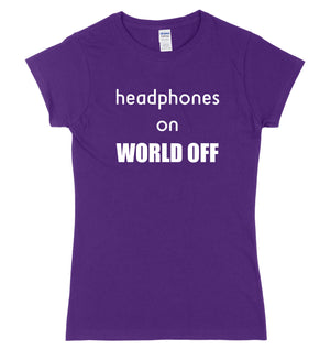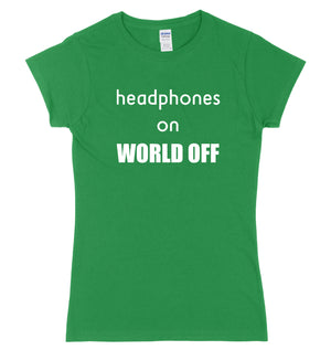 Headphones On World Off Womens Ladies Slim Fit T-Shirt