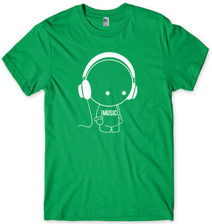 • Headphones on, music on and world off. If you can relate then you will appreciate our 'Music' character T-Shirt.