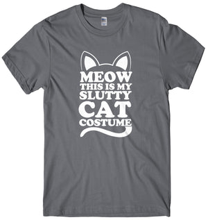 MEOW THIS IS MY SLUTTY CAT COSTUME - Be the best dressed Slutty Cat this Halloween with this Funny & Sarcastic Cat themed Halloween T-Shirt. Featuring a White print this design is available on a choice of 9 shirt colours.