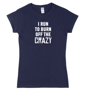 I Run To Burn Off The Crazy Womens Ladies Slim Fit T-Shirt
