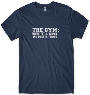 The Gym: Where Fat Is Burned And Pride Is Earned Mens Unisex Funny T-Shirt