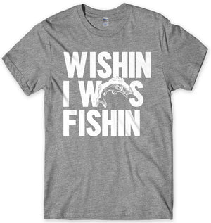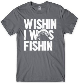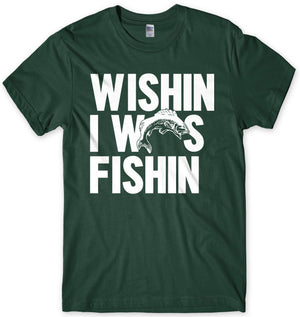 Wishin I Was Fishin Mens Funny Unisex Fishing T-Shirt
