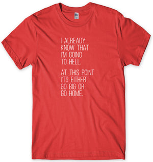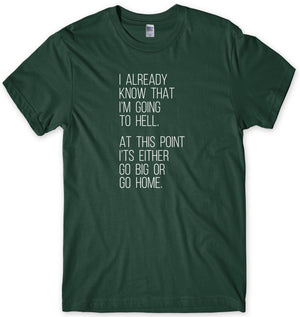 • If you know that there's no point even trying to redeem yourself then you need our 'I Already Know That I'm Going To Hell, At This Pont It's Either Go Big Or Go Home' T-Shirt.